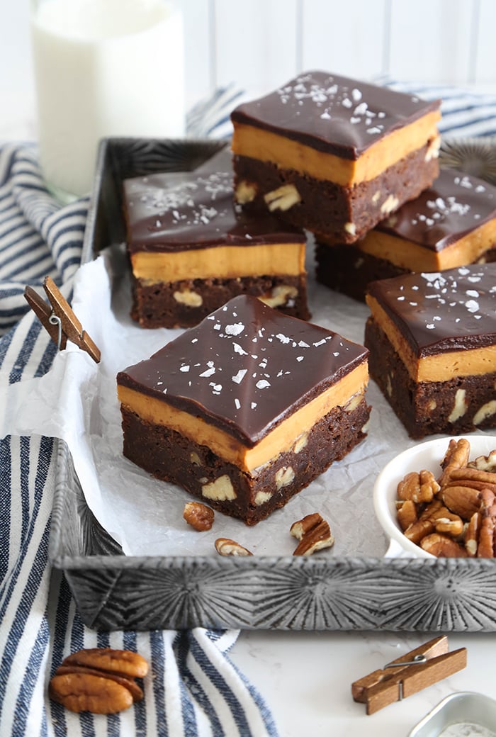 These Salted Caramel Cheesecake Brownies start with a fudgy pecan brownie, then get layered with dulce de leche cream cheese filling, a glossy chocolate ganache, and finished with a sprinkle […]